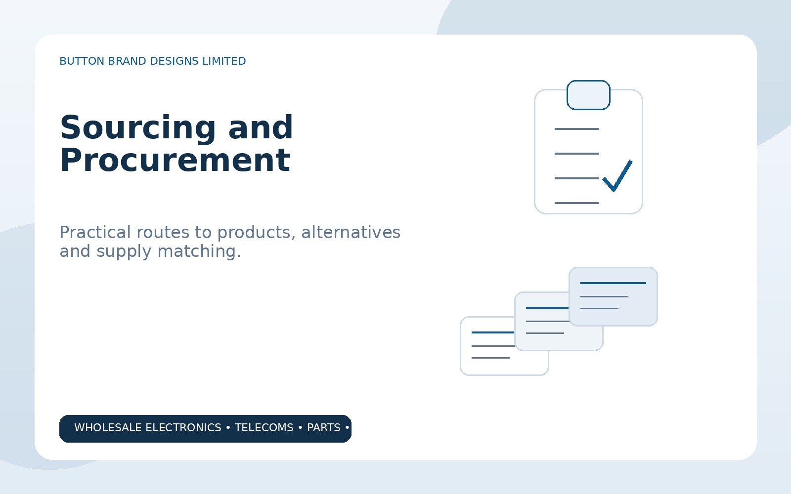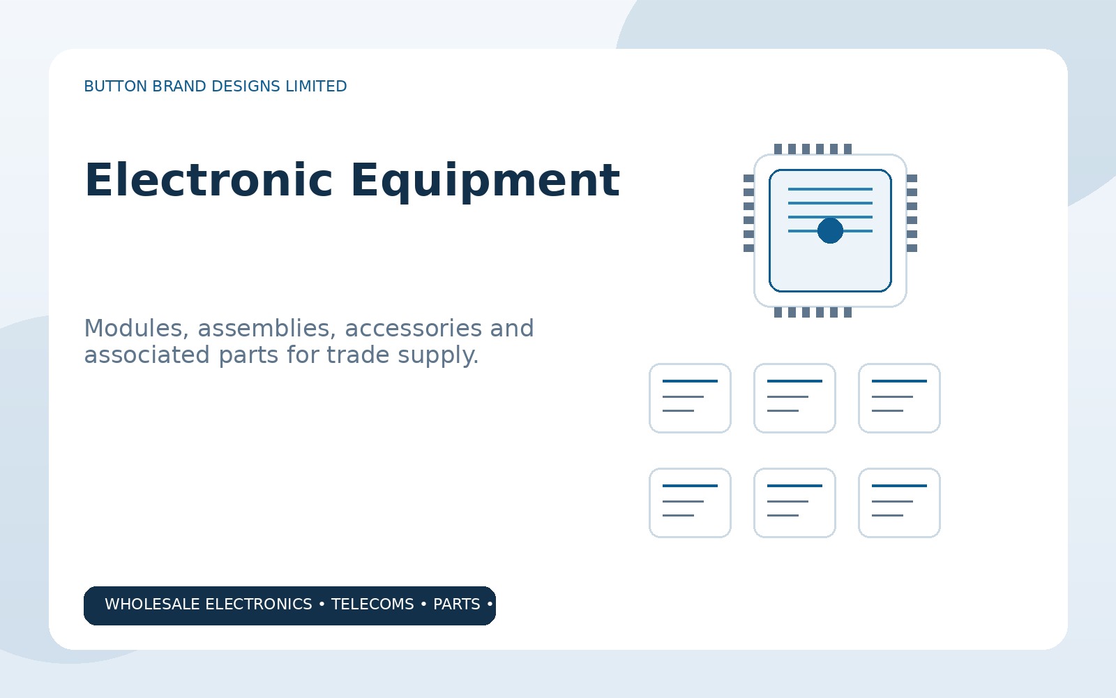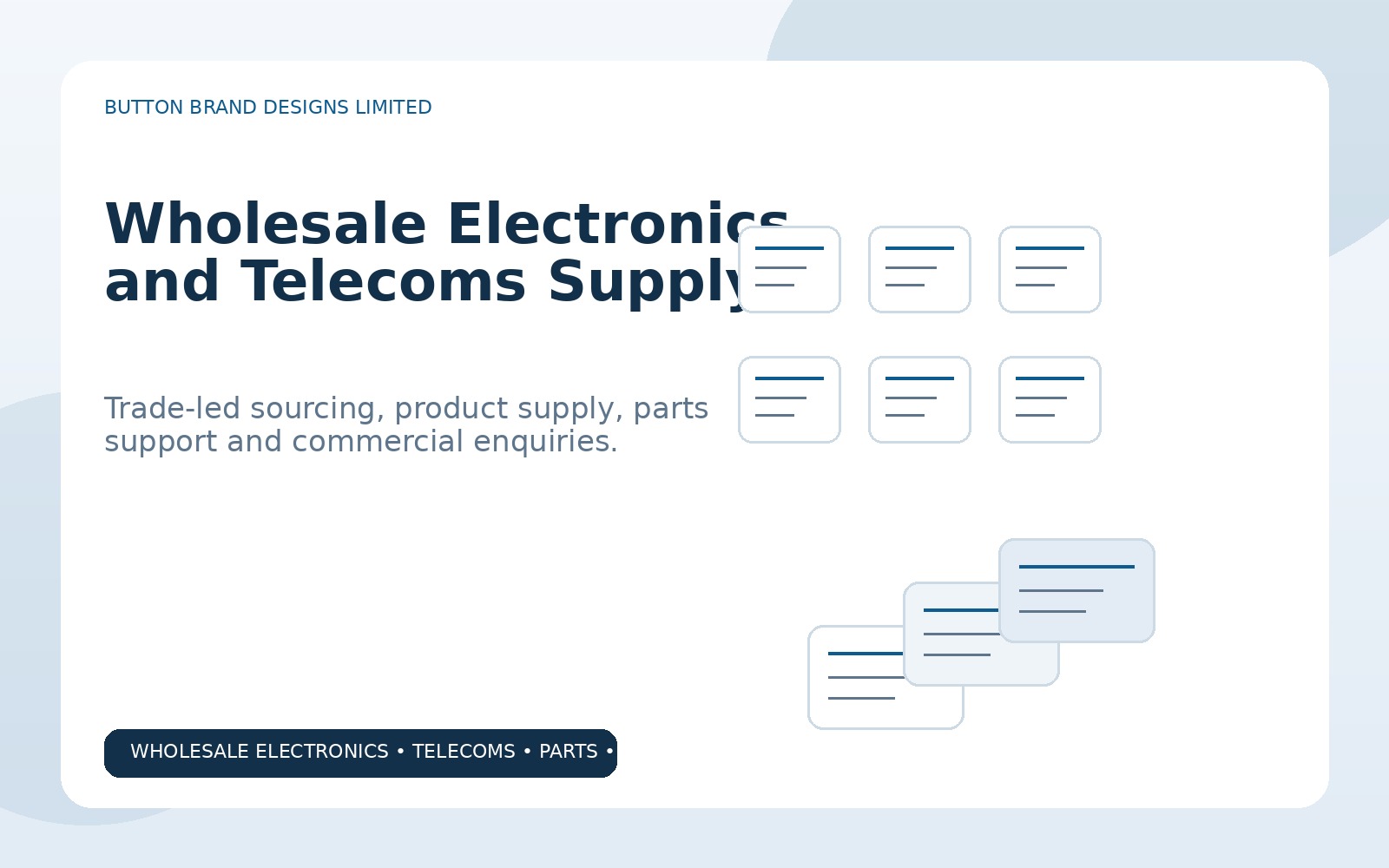 This version of the site shifts the message away from design consultancy and toward trade supply activity. It is intended to sit more naturally alongside the company operations statement covering wholesale electronic, telecommunications, and electrical goods.