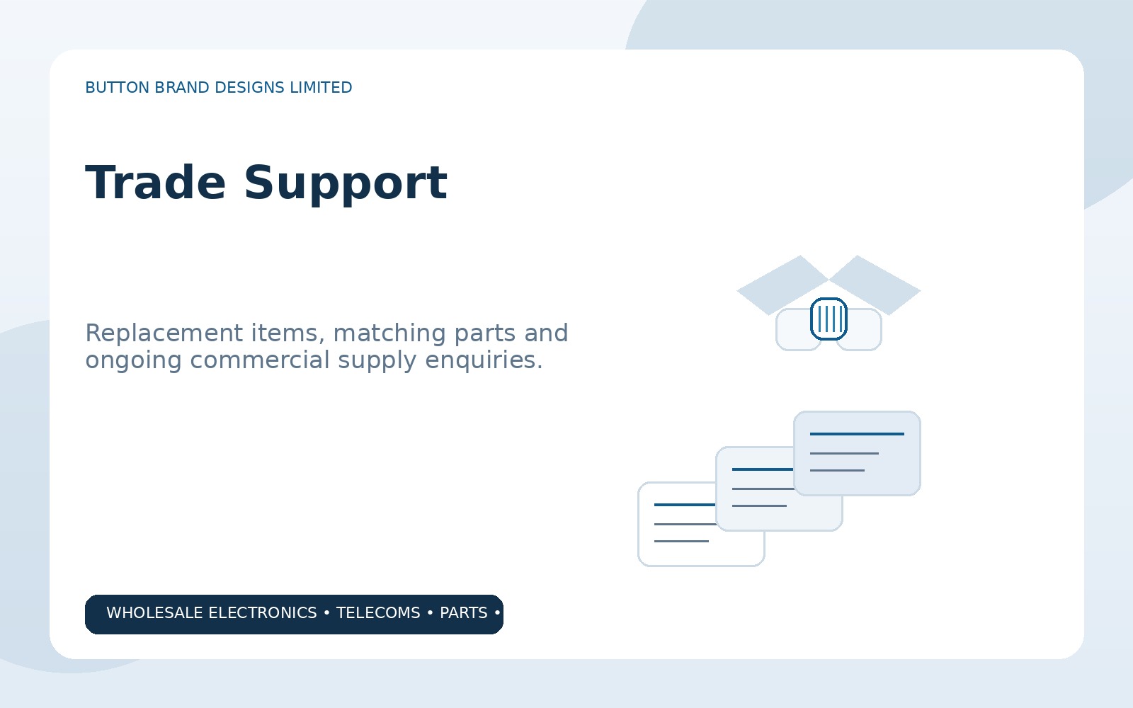 Contact Button Brand Designs Limited regarding wholesale supply, sourcing, parts enquiries, or trade purchasing requirements.