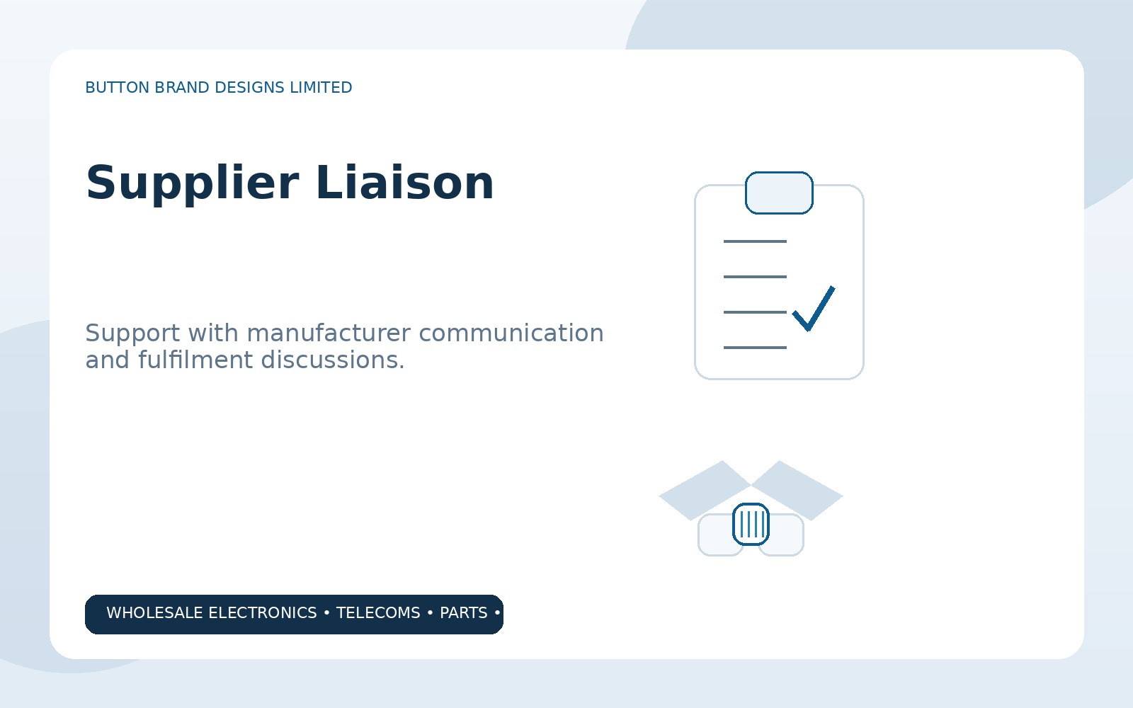 Contact Button Brand Designs Limited regarding wholesale supply, sourcing, parts enquiries, or trade purchasing requirements.